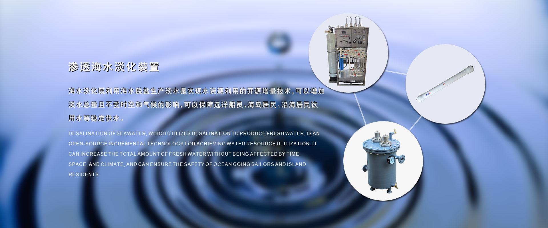 在過去的17年里我們?yōu)榇疤峁┖KO備解決了因船的續(xù)航長而不能解決的淡水問題,全球的水資源越來越少,我們以改善遠洋船員、海島居民的生活水資源為已任,以科技創(chuàng)新、誠信經營為核心競爭力。
